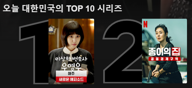 종이의 집을 꺾고 당당하게 1등을 차지한 법률 드라마! 이상한 변호사 우영우입니다.