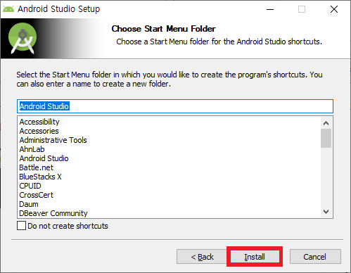 ※ Do not create shortcuts : 바로가기 여부 파악 체크 박스 / 필자는 체크 안했습니다.