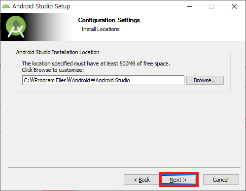안드로이드 스튜디오를 설치 완료하였습니다.