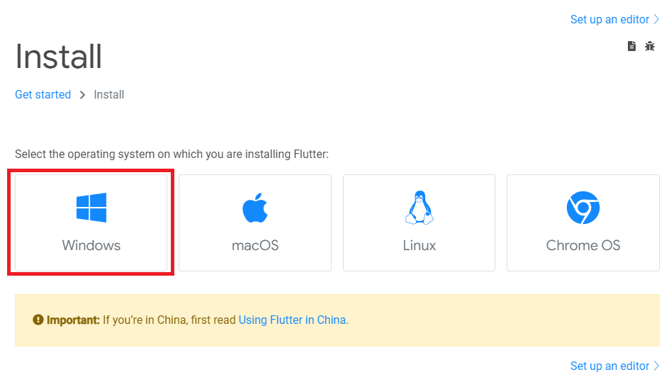 Install Flutter and get started. Downloads available for Windows, macOS, Linux, and Chrome OS operating systems.