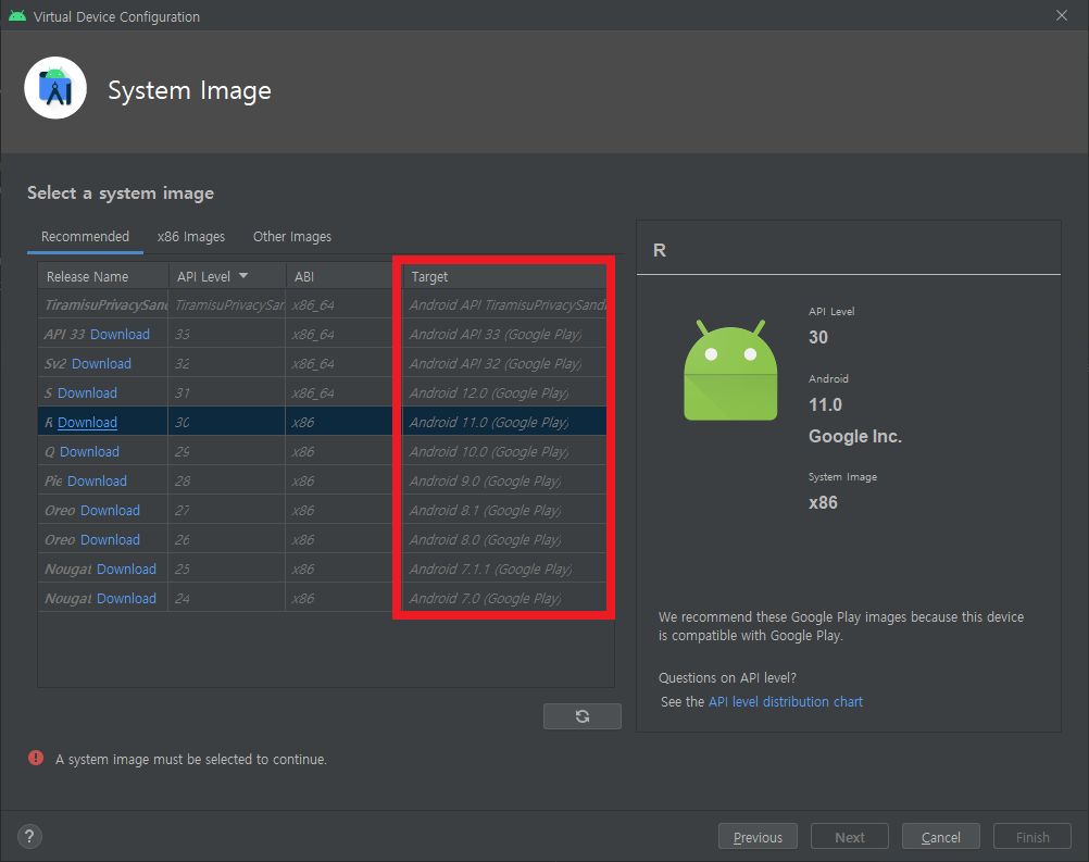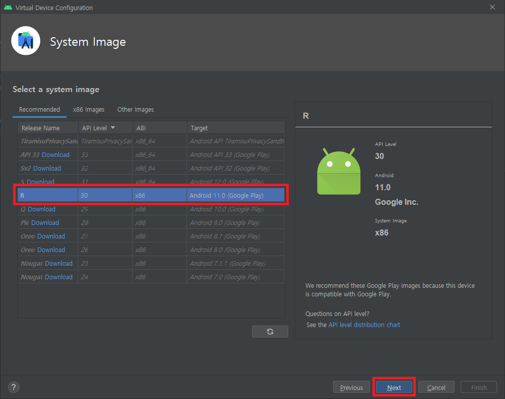 2-3. 해당 디바이스에 어떤 API(버전)을 설치할 지 선택하시면 됩니다.
