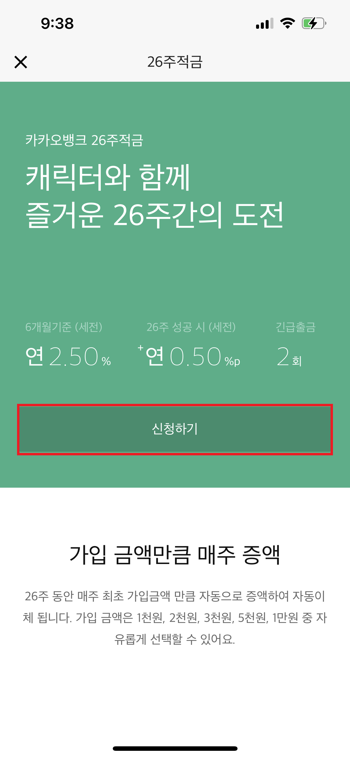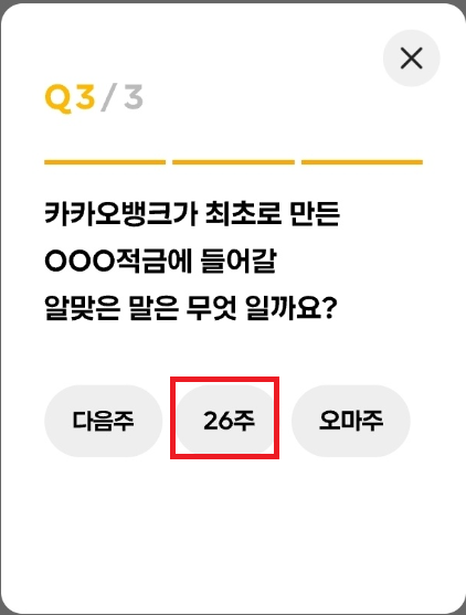카카오에서 26주 적금은 개인들이 금액을 선택하여 그 금액만큼 주마다 플러스가 되는 개념입니다.