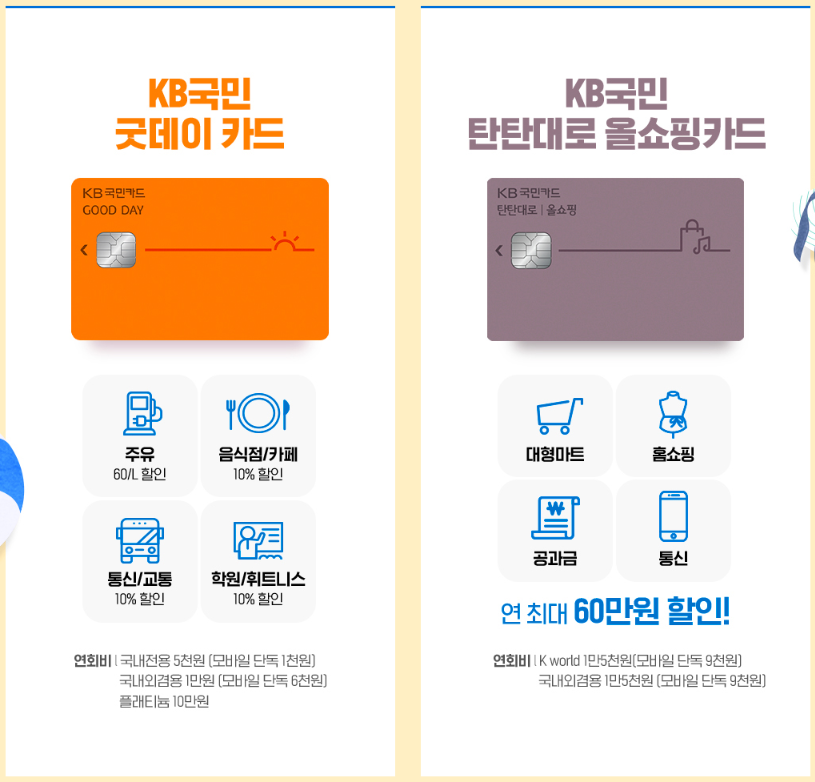 ※ KB국민 굿데이 카드 / KB국민 탄탄대로 올쇼핑카드