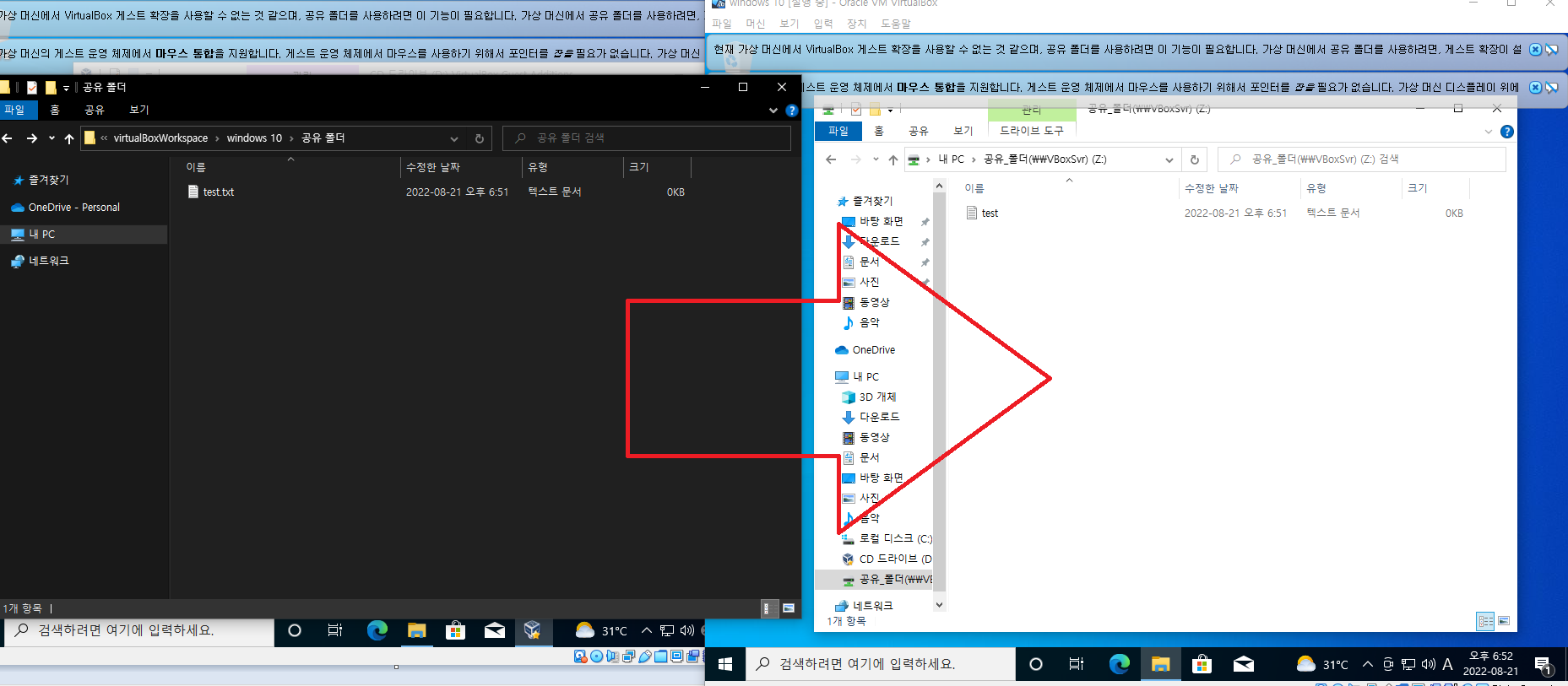 이렇게 해서 VirtualBox(버추얼 박스) - 공유 폴더 사용법(드래그 앤 드롭)에 대해 알아보았습니다.