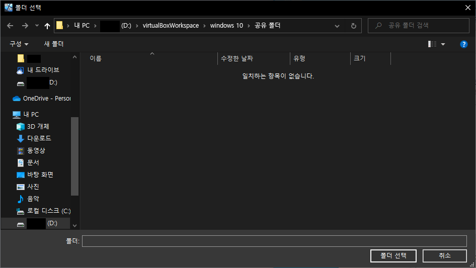 3. 필자는 아래의 windows 10\공유 폴더로 공유 폴더를 지정했습니다.