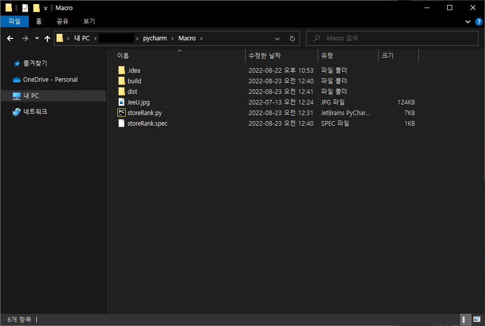 그러면 해당 폴더에 build, dist, *.spec 등이 생성됩니다.