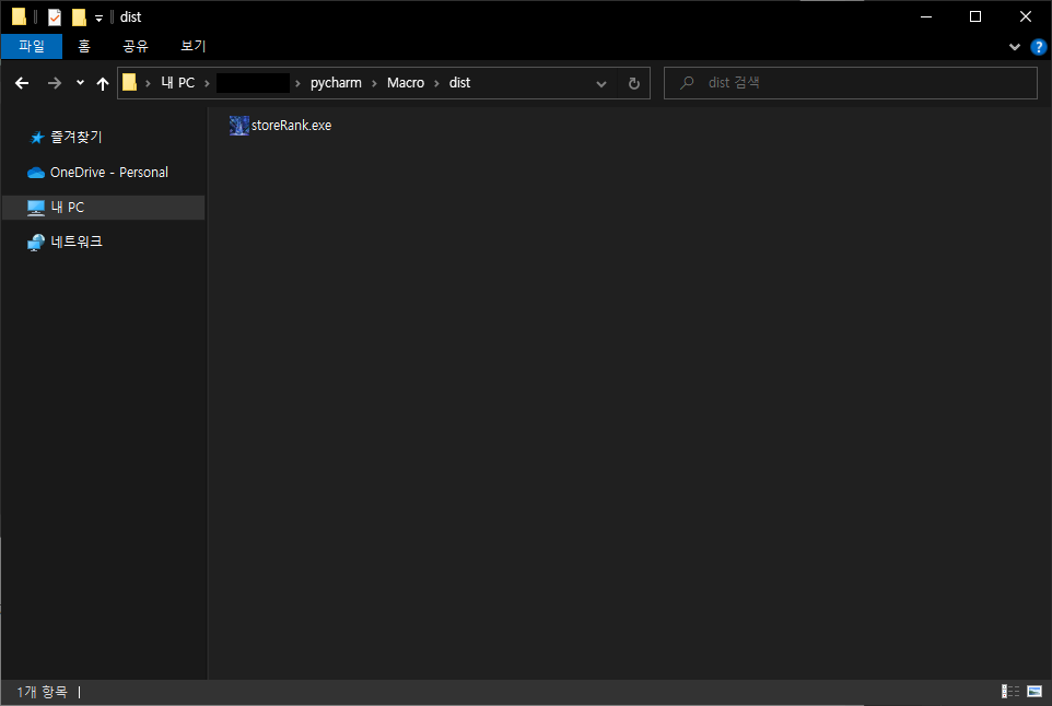 ※ --onefile 옵션을 주지 않았더라면 해당 폴더에 다른 종류의 파일들과 폴더들이 생기게 됩니다.