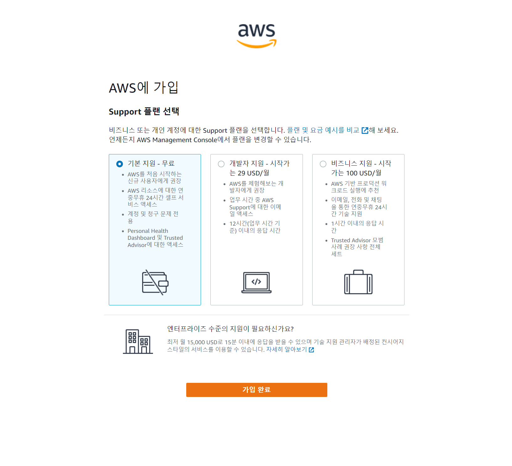 7. 무료로 이용할거니 기본 지원 - 무료로 선택해줍니다.