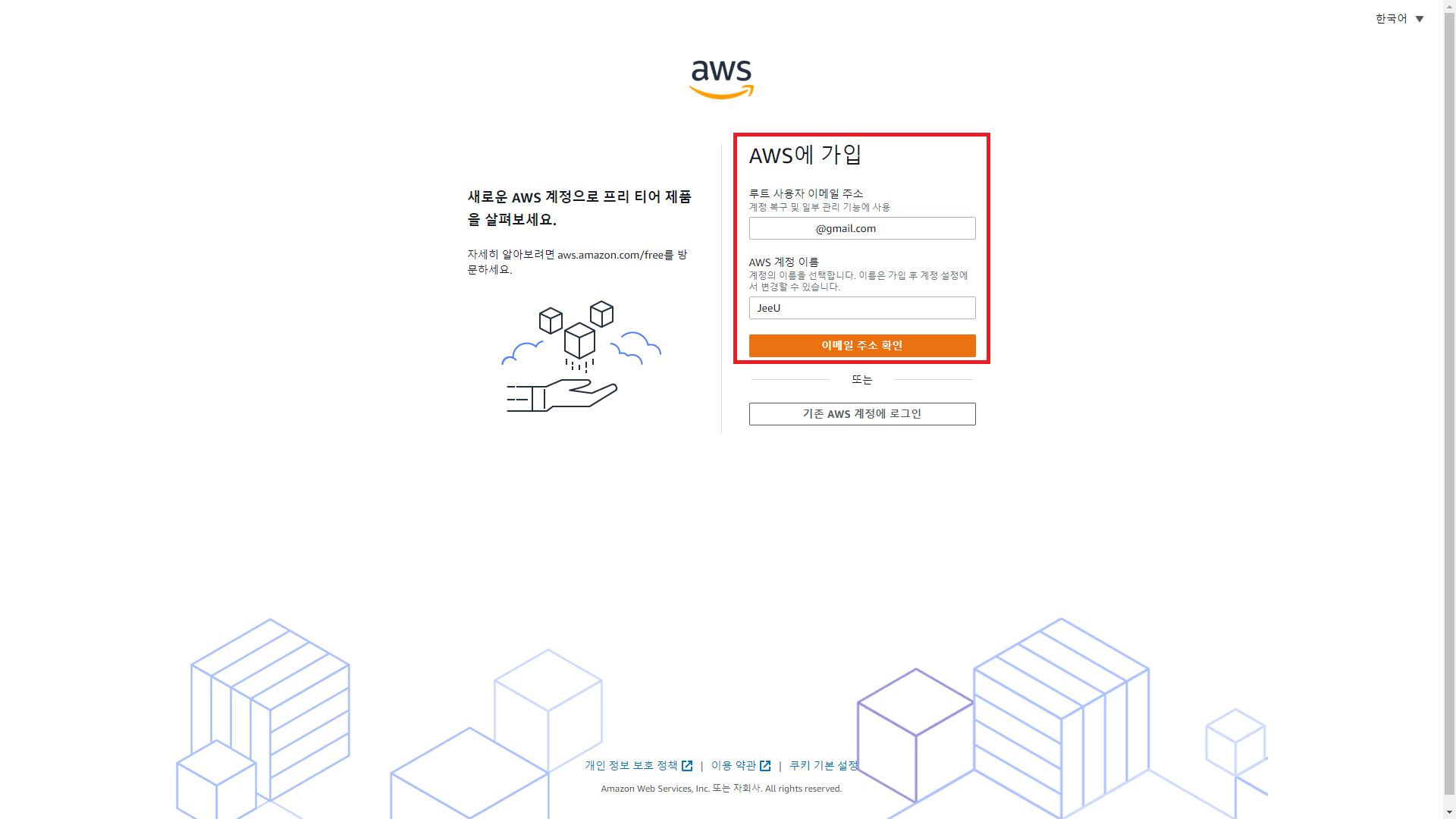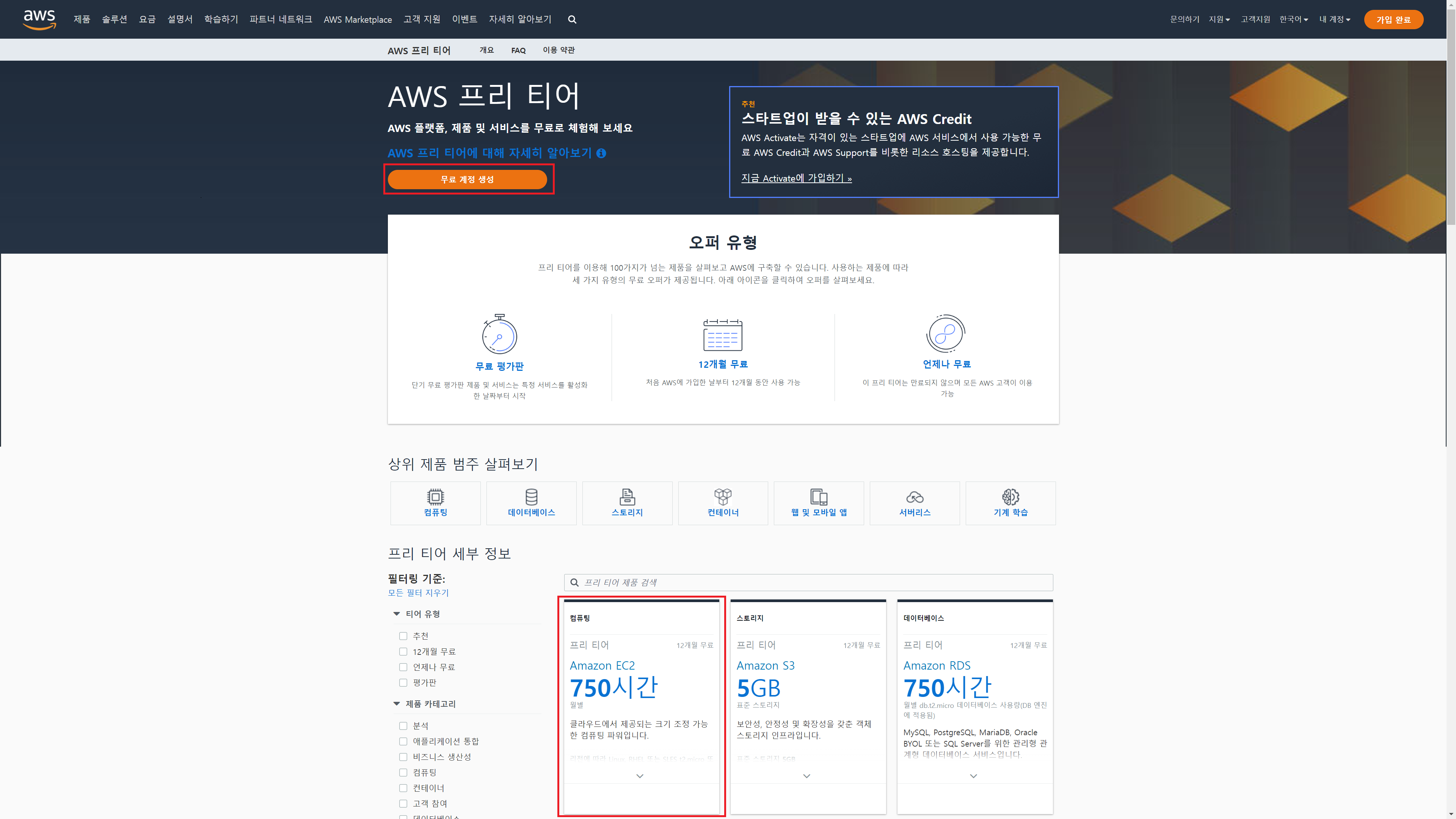 계정을 만드신 날로부터 12개월동안 프리 티어 버전의 클라우드를 무료로 사용할 수 있습니다.
