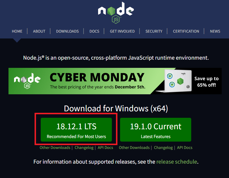node js 홈페이지에 접속하여 좌측에 있는 안정적인 버전으로 다운로드를 받겠습니다.