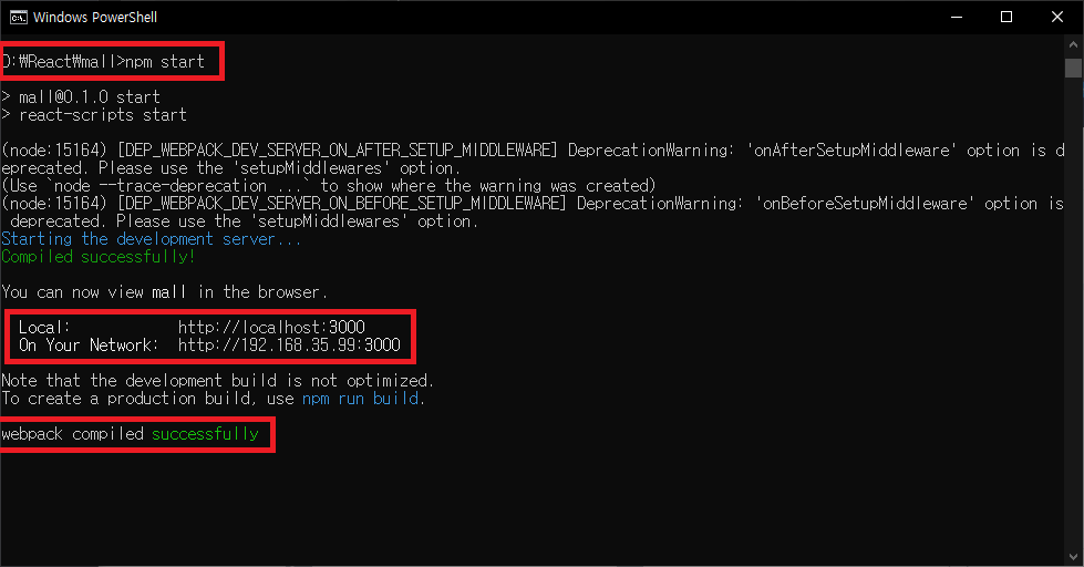 설정한 프로젝트명 디렉토리에 들어가서 npm start로 실행해주시면 됩니다!