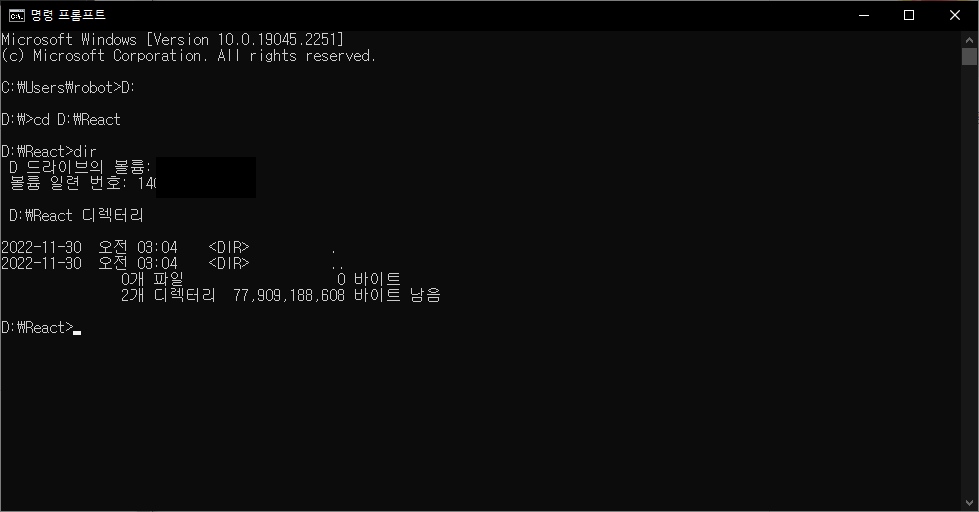 먼저 리액트를 사용할 디렉토리(폴더) 먼저 생성을 하고 그 안에서 진행을 하도록 하겠습니다.