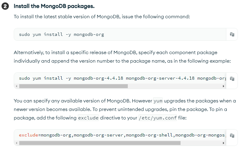sudo yum install -y mongodb-org
