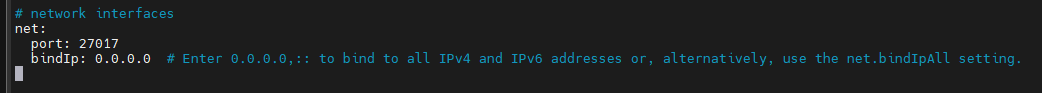 sudo vi /etc/mongod.conf # 몽고 디비 설정 파일