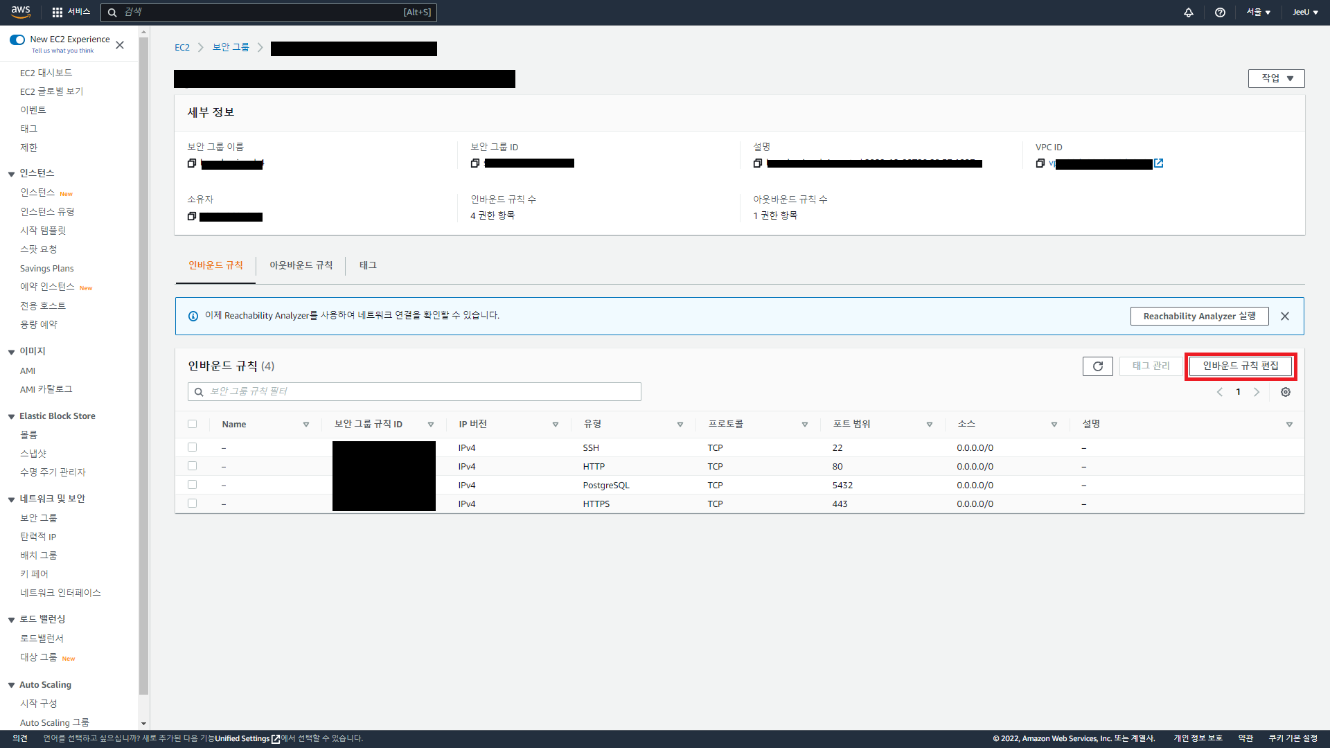 3.2. 빨간색 박스 인바운드 규칙 편집 클릭