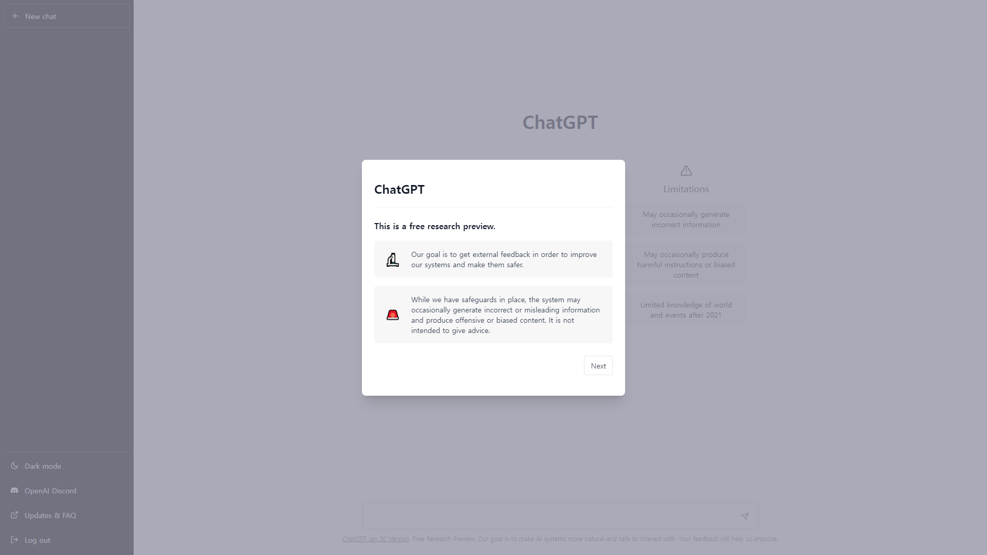 1. https://chat.openai.com/ 링크로 접속하여 회원가입 및 로그인을 진행