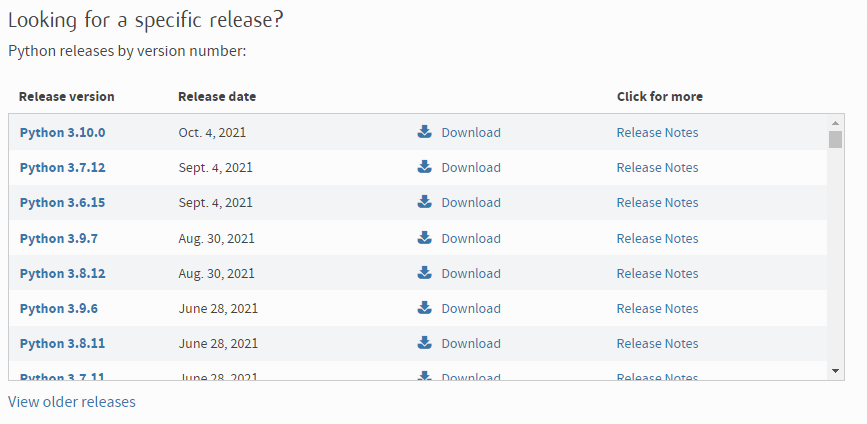 현재 기준 3.10.x가 최신이므로 3.9.x 버전을 설치하도록 하겠습니다.