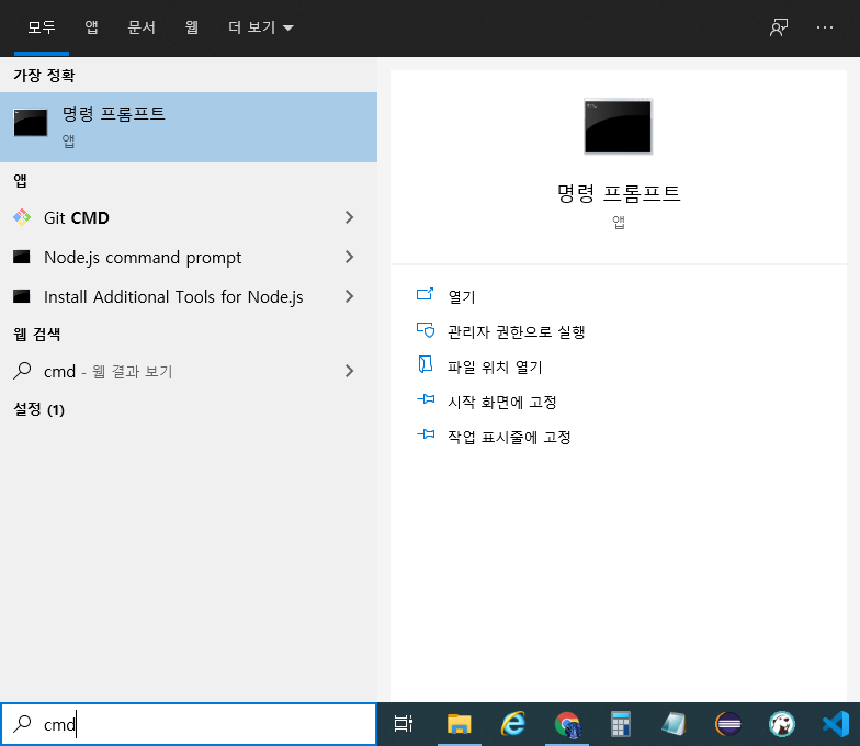 Window 키를 누르고 CMD라고 하시게 되면 아래 사진처럼 나오게 됩니다.