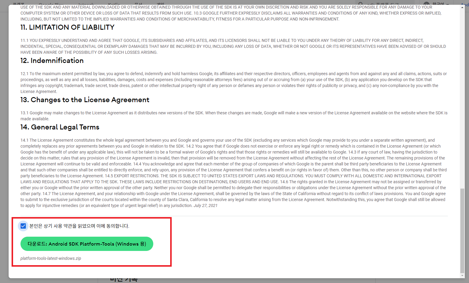 https://developer.android.com/studio/releases/platform-tools?hl=ko