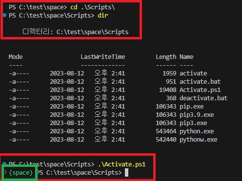 그치만 결국 (Power Shell 기준)Activate.ps1 파일을 실행시켜주시면 가상환경을 실행하게 되는겁니다!