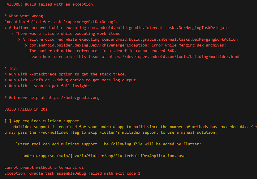 오늘은 플러터(flutter) - single dex file (mergeExtDexDebug) 오류에 대해서 알아보려고 합니다.
