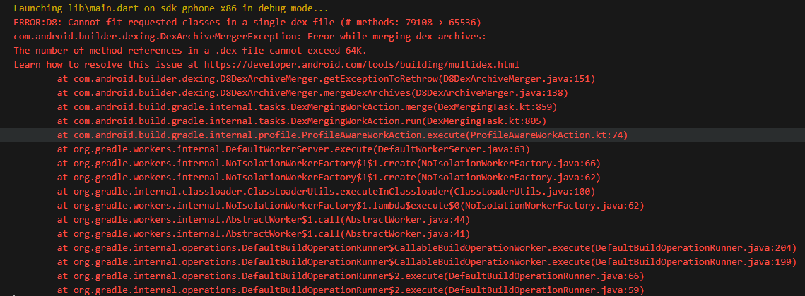 ERROR:D8: Cannot fit requested classes in a single dex file (# methods: 79108 > 65536)