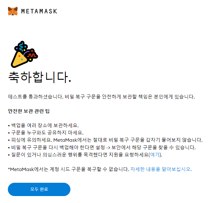지금까지 메타마스크 신규 생성에 대해 알아보았습니다.