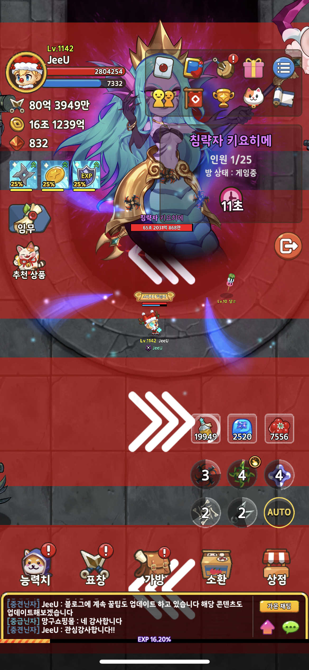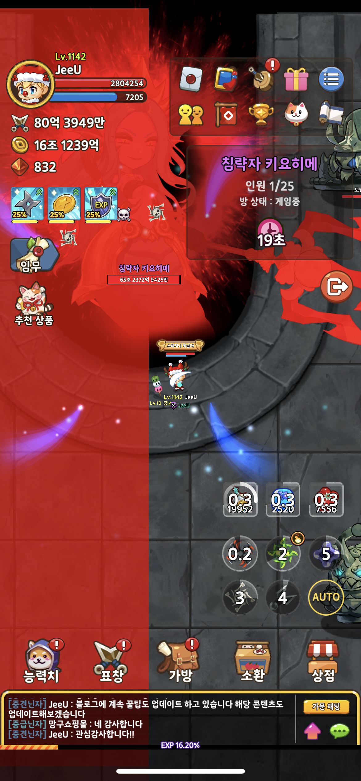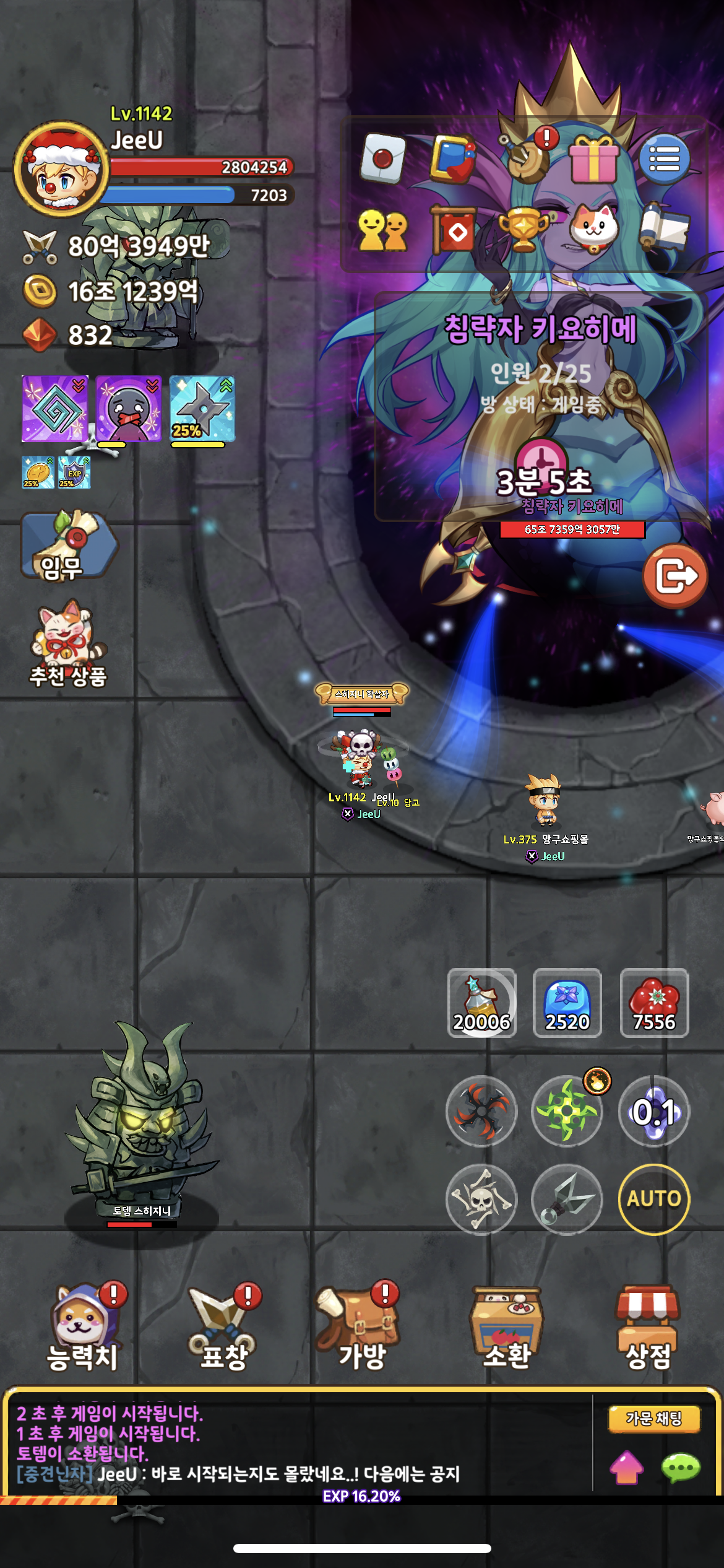 1. 가주가 방을 만들게 되면 1분의 대기 시간을 갖고 가문 레이드가 시작됩니다.
