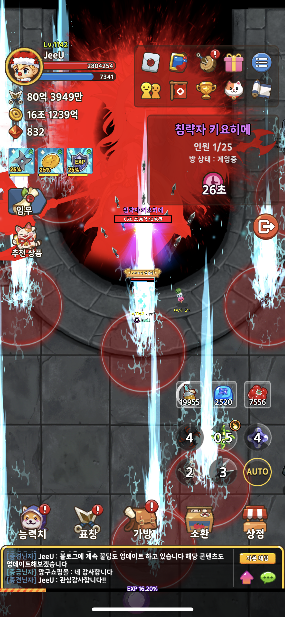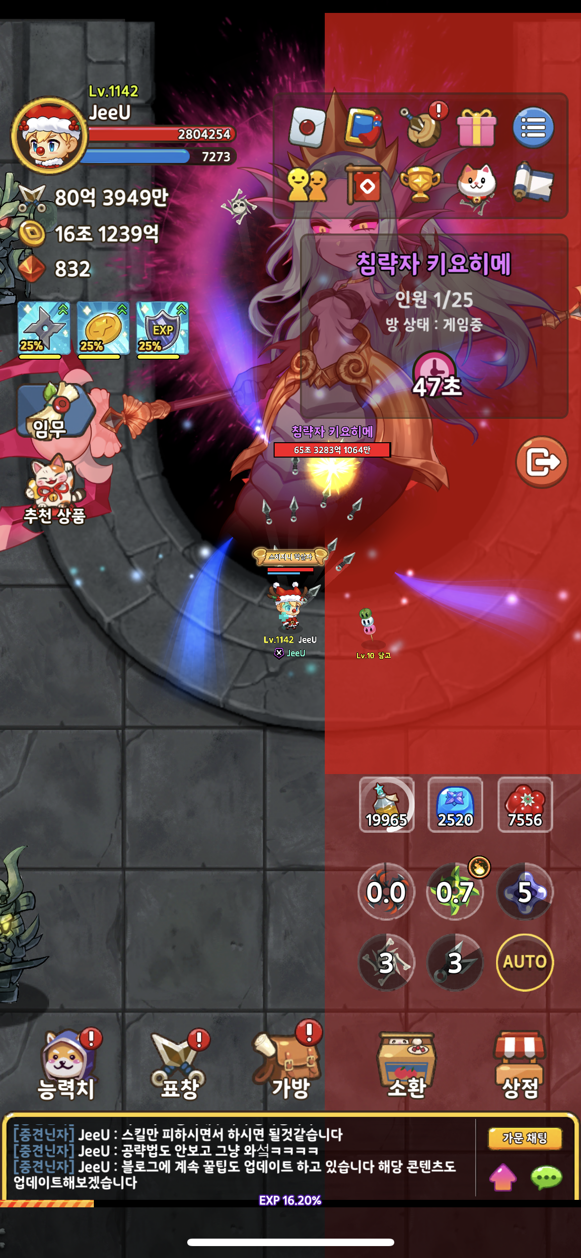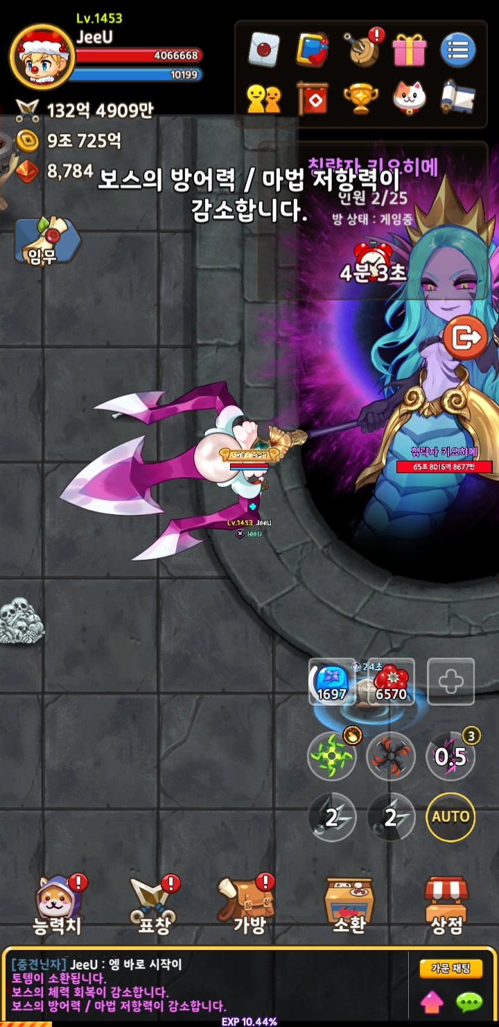 5. 토템을 부시고 보스 패턴을 피해가면서 보스를 5분간 때려주시면 됩니다!