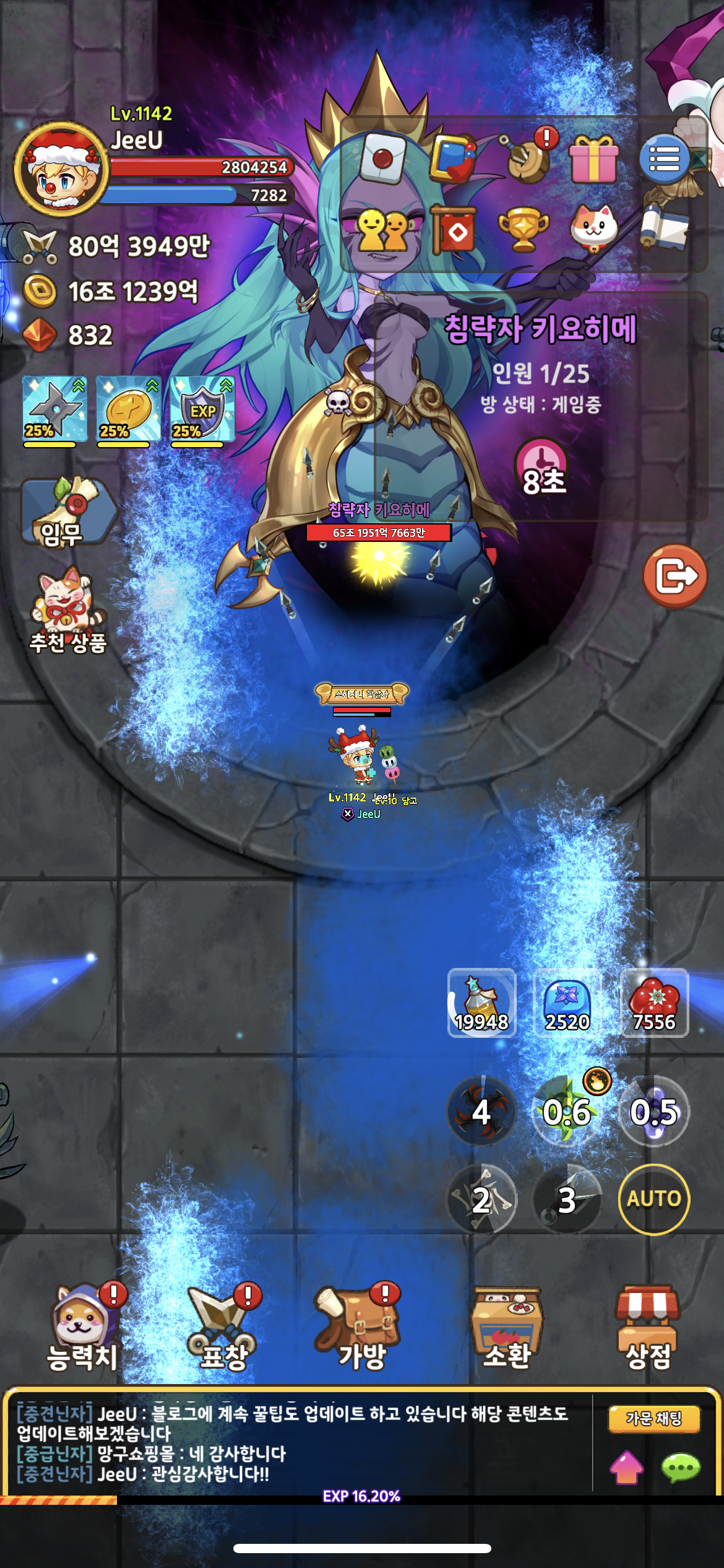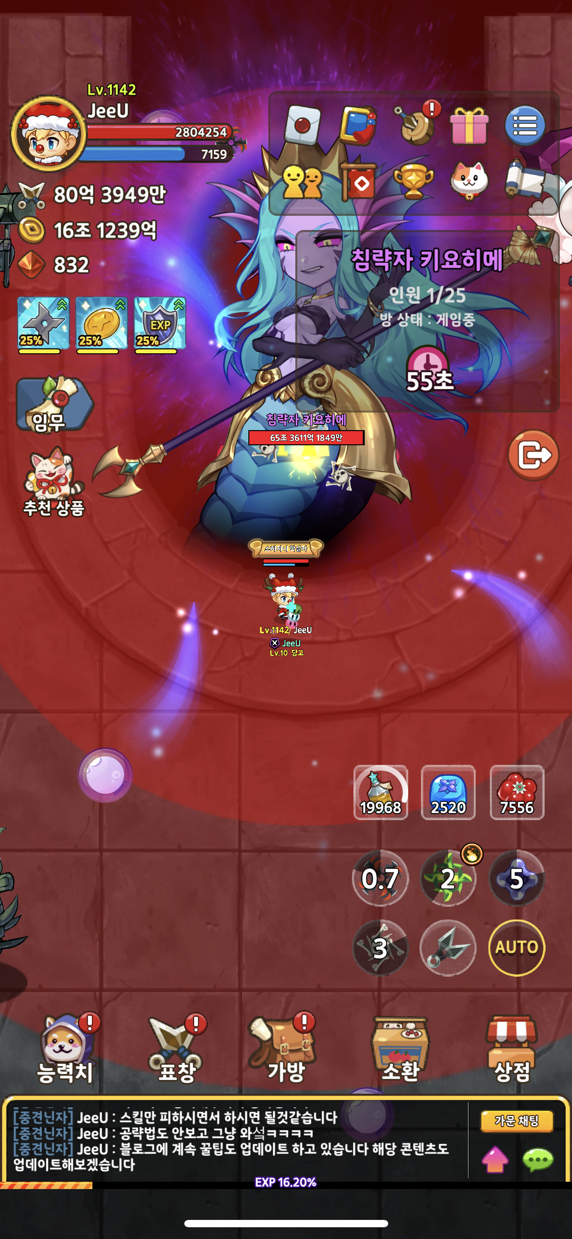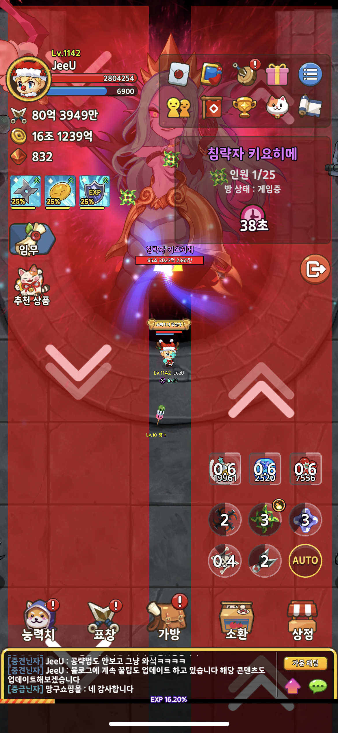 5. 토템을 부시고 보스 패턴을 피해가면서 보스를 5분간 때려주시면 됩니다!