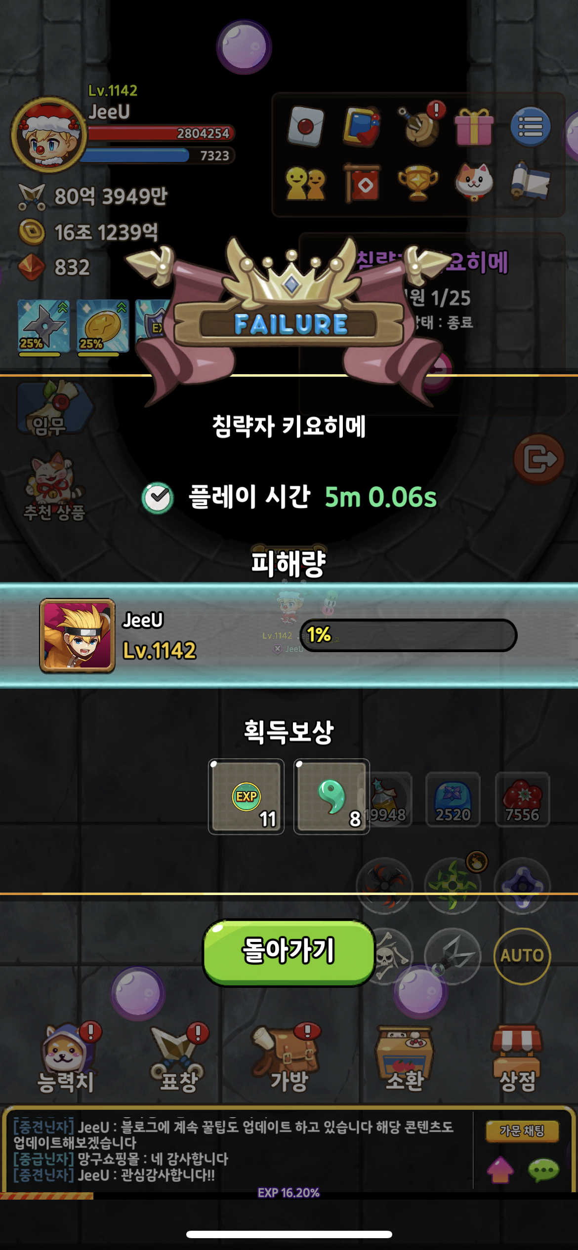 - 끝나게 되면 참여 인원들은 획득 보상을 받게 됩니다.