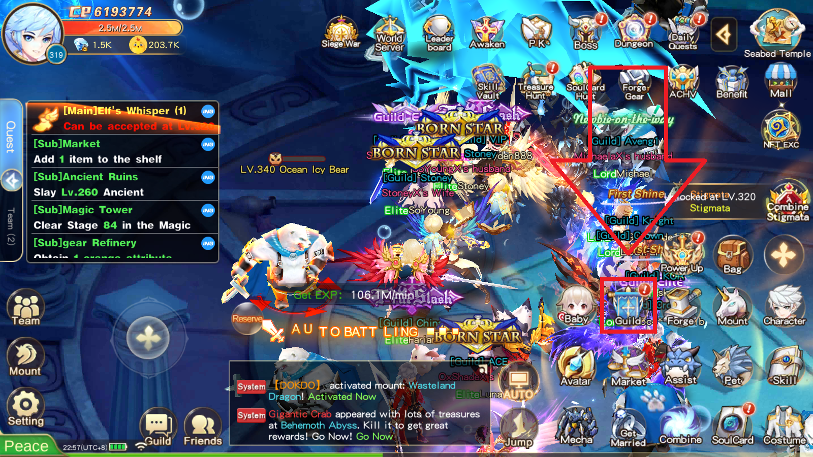 - 길드 일일 보상을 통하여 오프라인 2시간 쿠폰을 받을 수 있습니다.