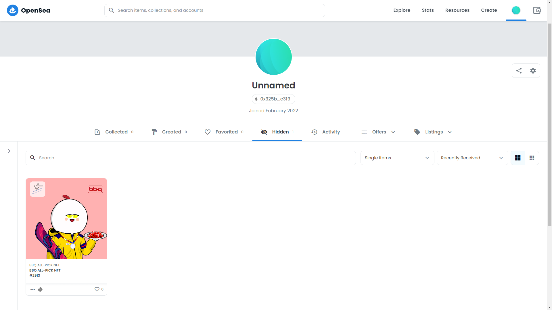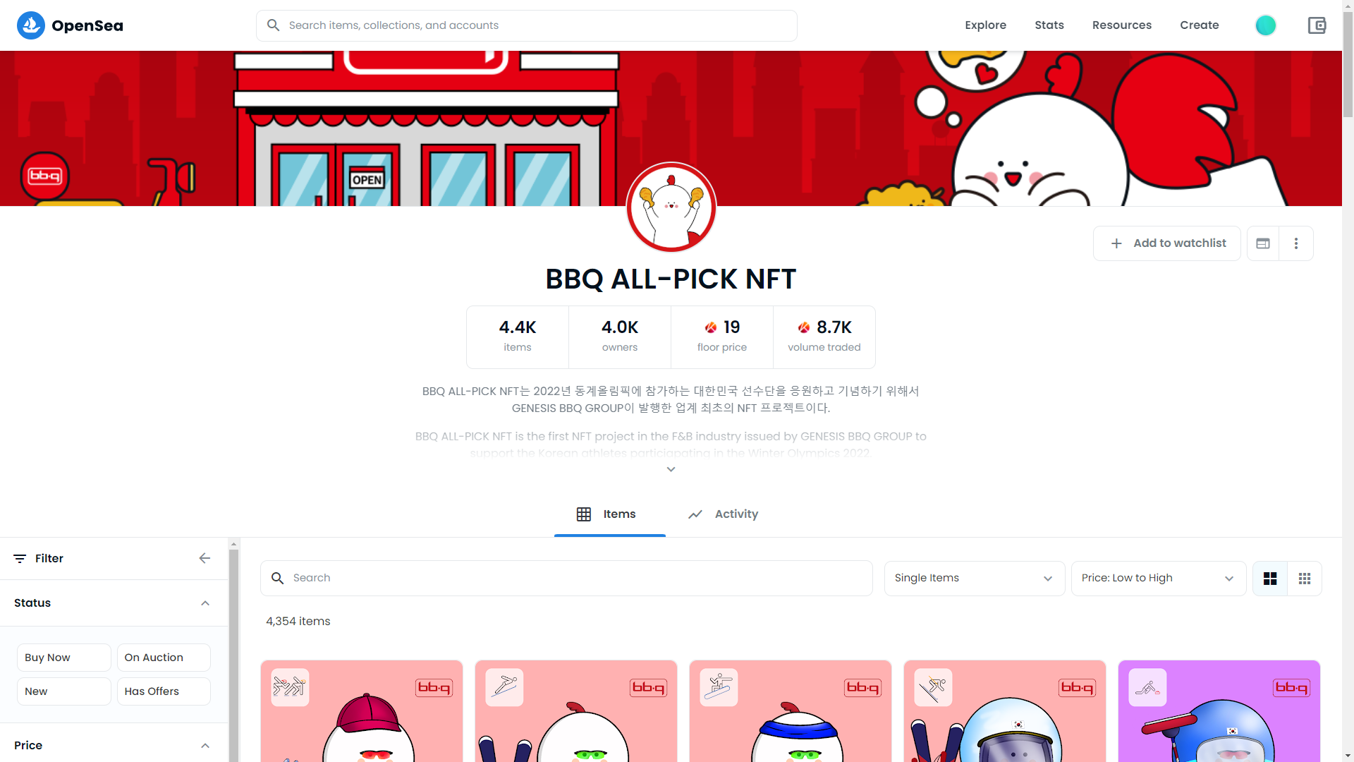 해당 OpenSea 마켓은 이전 글에 적은 BBQ ALL-PICK NFT를 판매 가능한 사이트 입니다.
