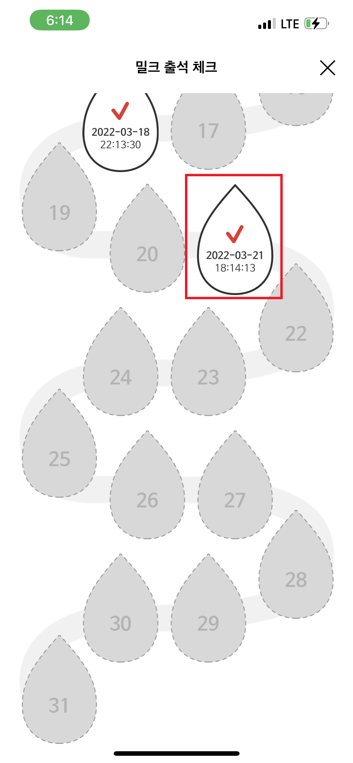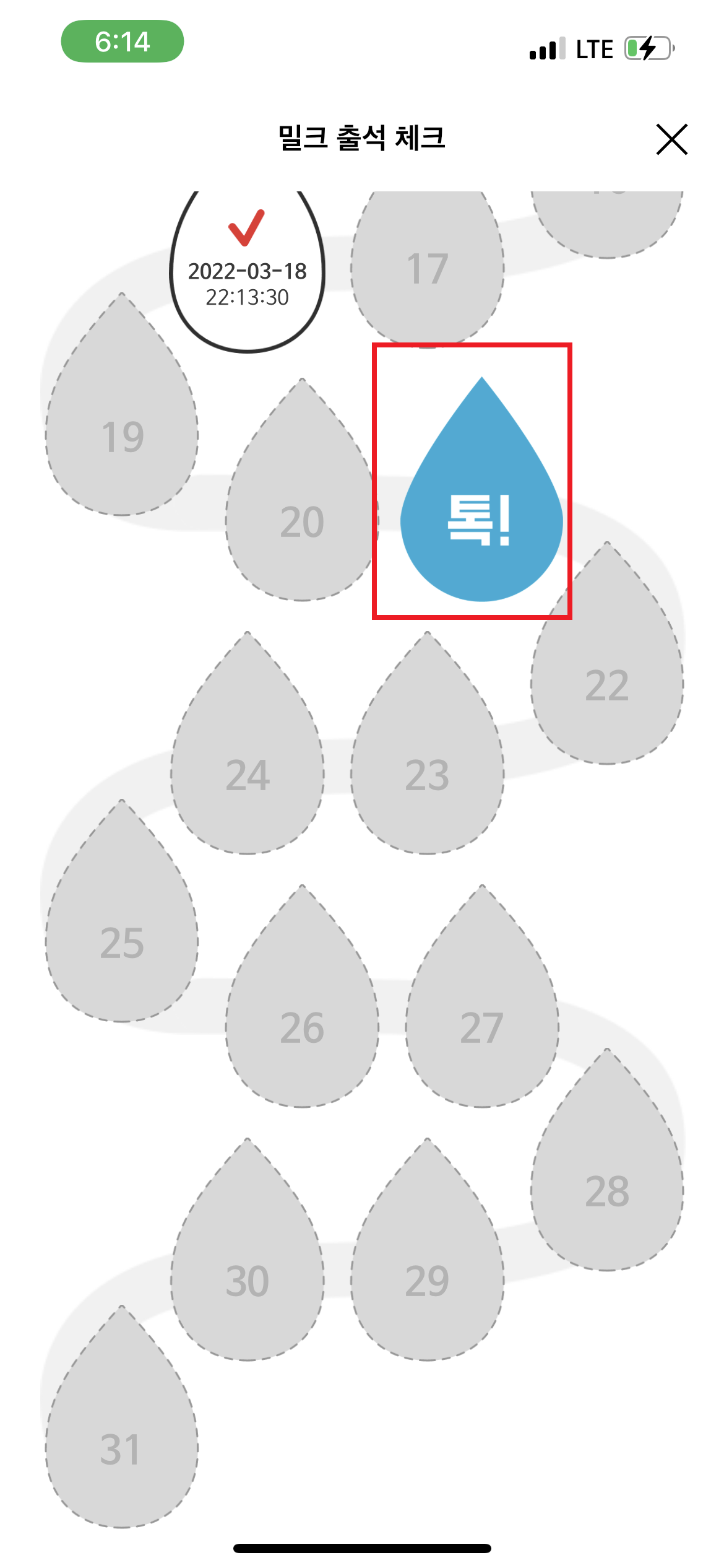 3. 콕! 하는 물방을 클릭하여 출석체크를 진행