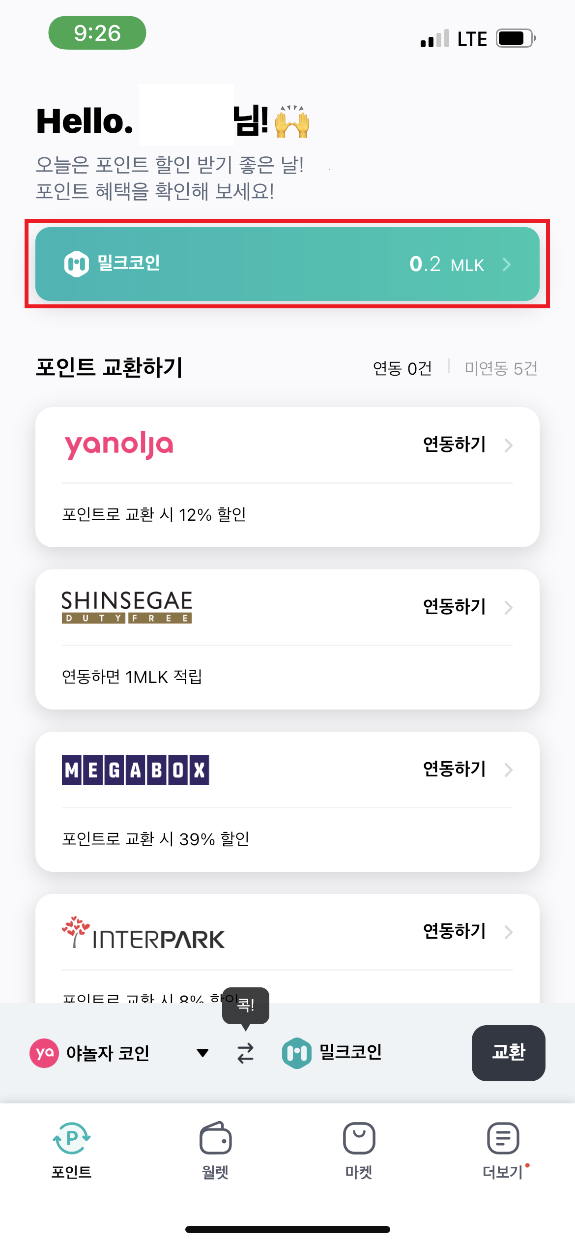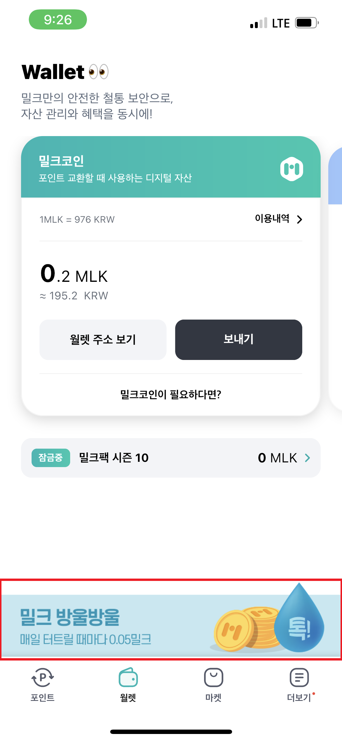1. 해당 밀크 앱을 실행시켜 로그인을 진행하고 밀크코인(지갑)을 클릭