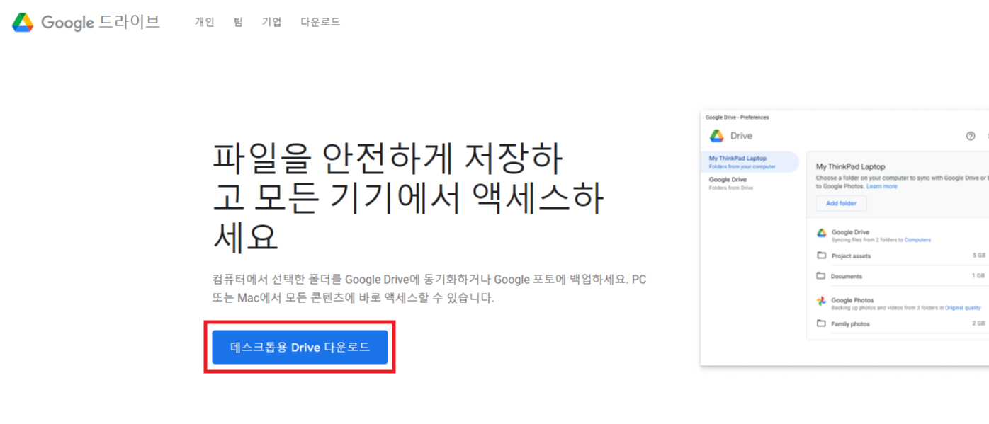 3. 데스크톱용 Drive 다운로드를 클릭