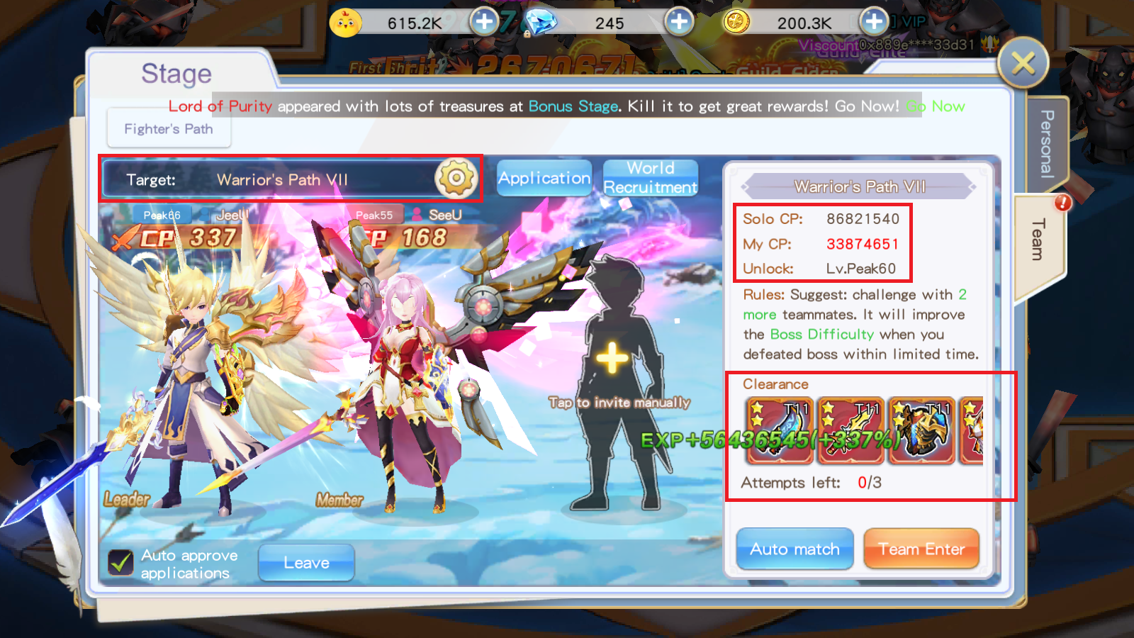 ※ 아래의 그림으로 예시를 보자면 파티원도 같이 Peak60이상이여야 진입이 가능합니다.