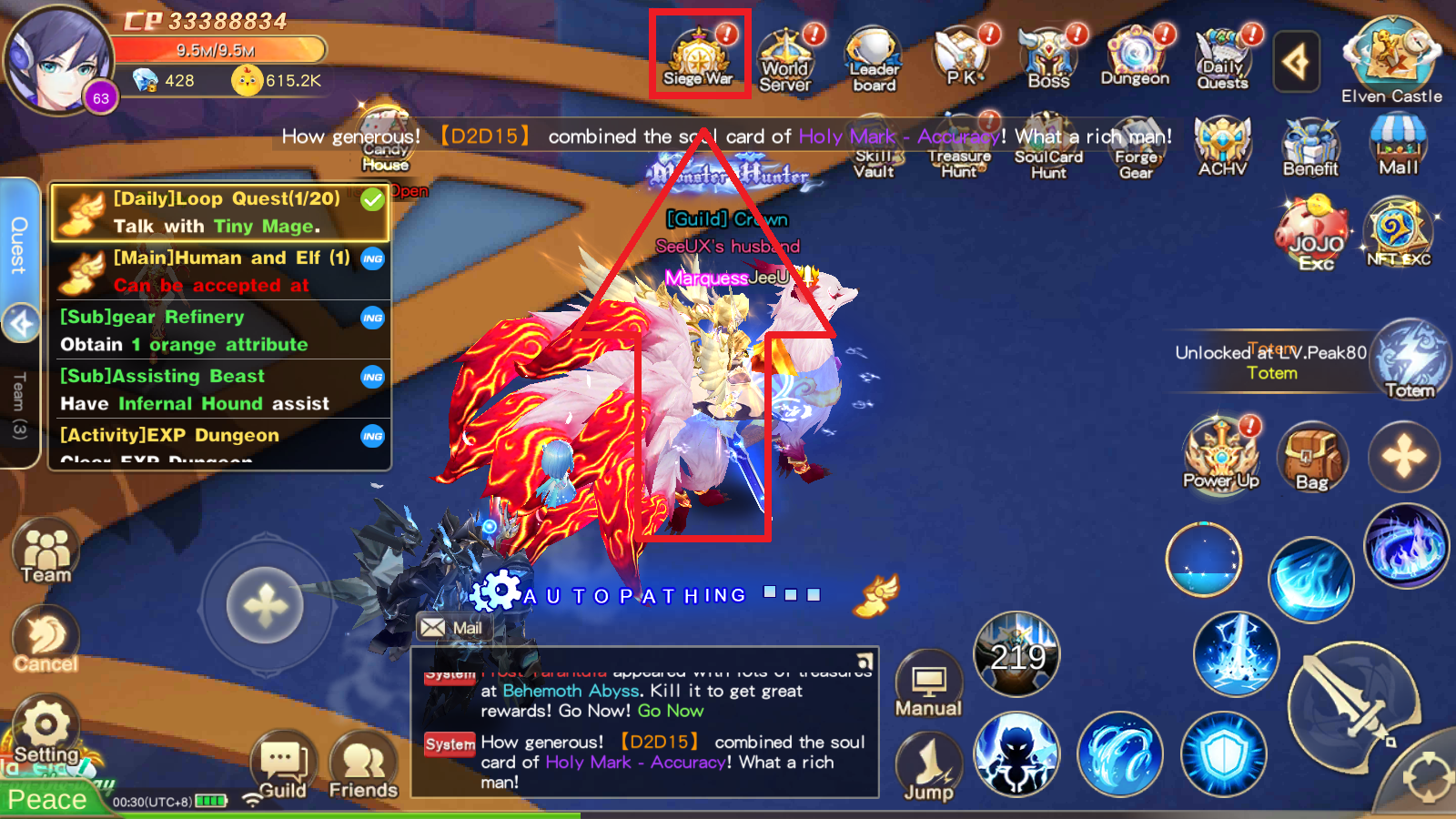 ※ 시즈워(Siege War) 진입 방법 : 아래의 그림처럼 12시에 Siege War를 클릭하면 입장 가능
