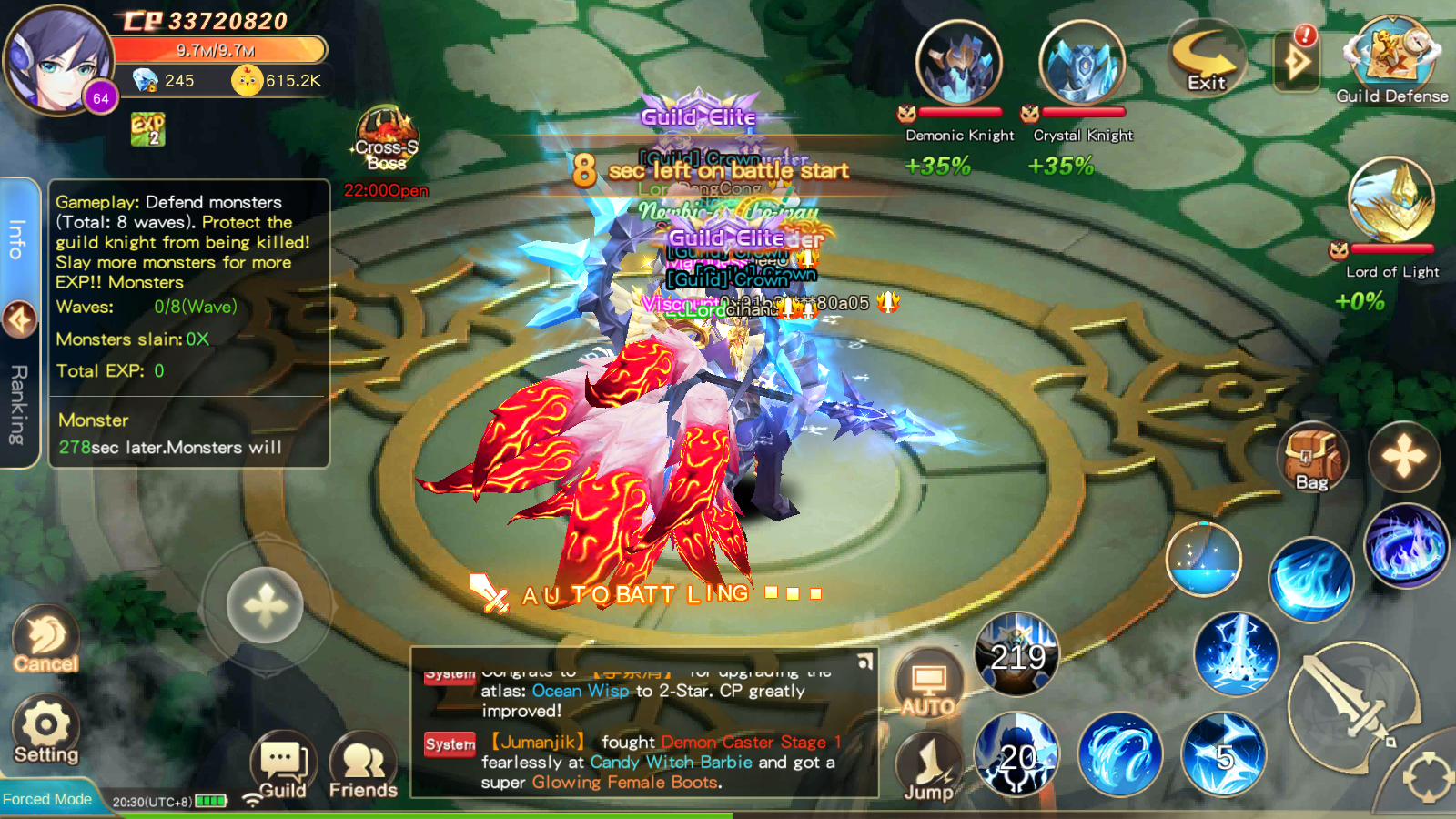 ※ 좌측 상황판을 보면 몇 웨이브, 전체 획득 경험치, 중앙 보너스 몬스터 등장 시간이 표시됩니다.