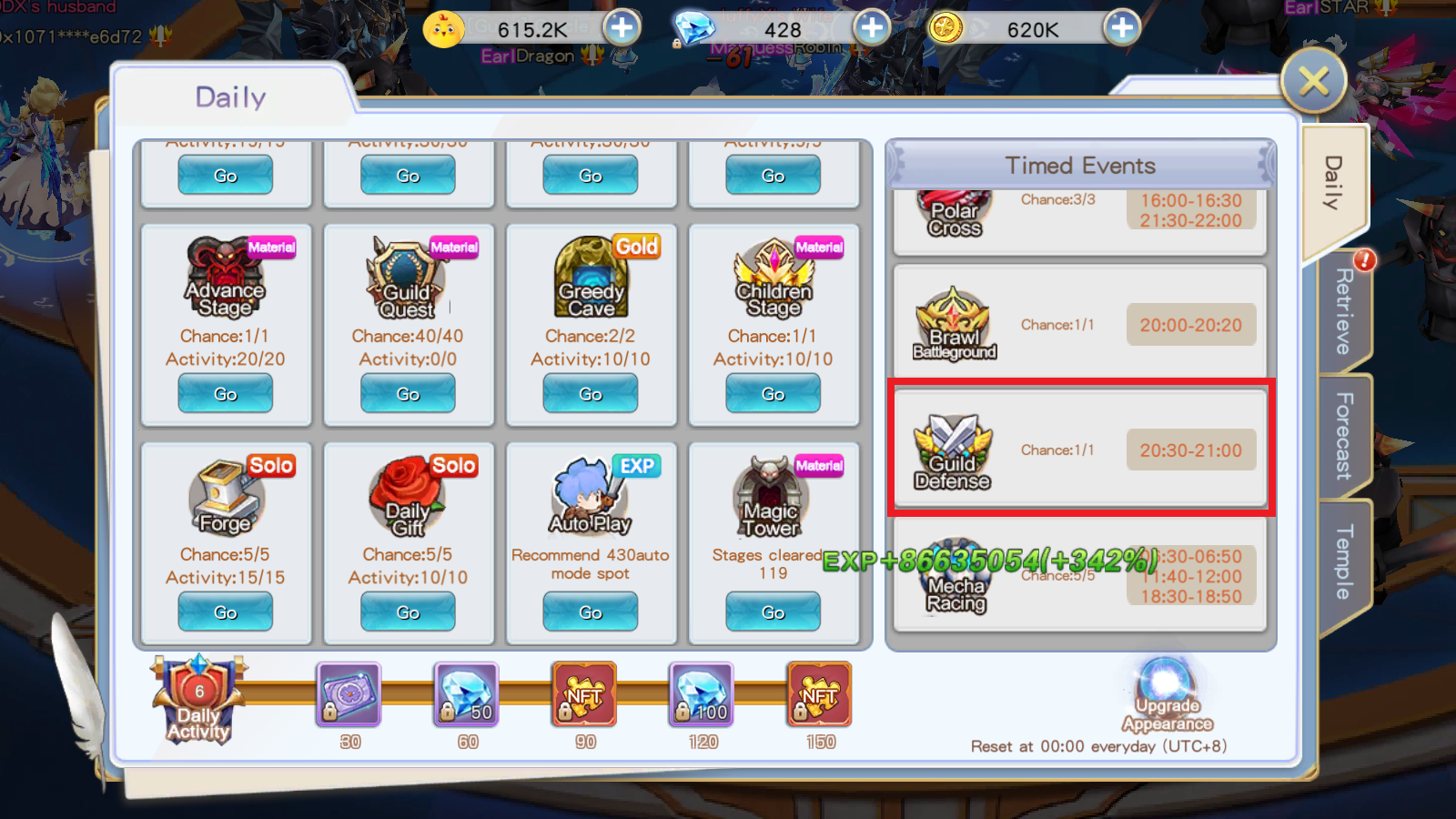- 게임 왼쪽 하단에 보시면 인게임내 시간이 존재합니다. (UTC+8)인걸 확인할 수 있습니다.