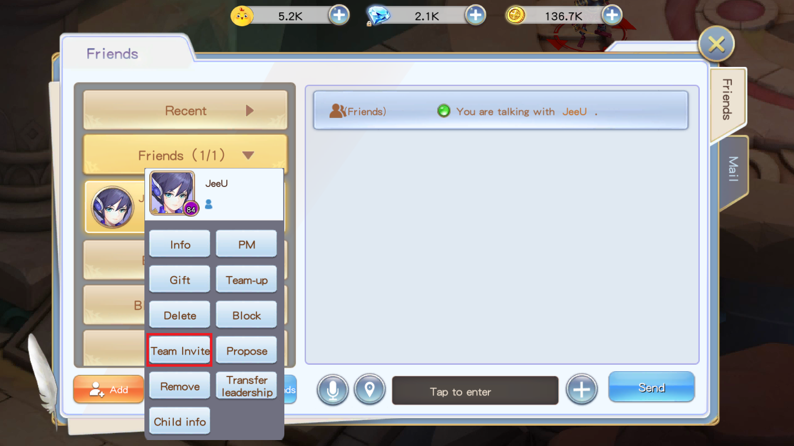 1. 파티장 권한을 넘겨줄 캐릭터를 선택하여 클릭