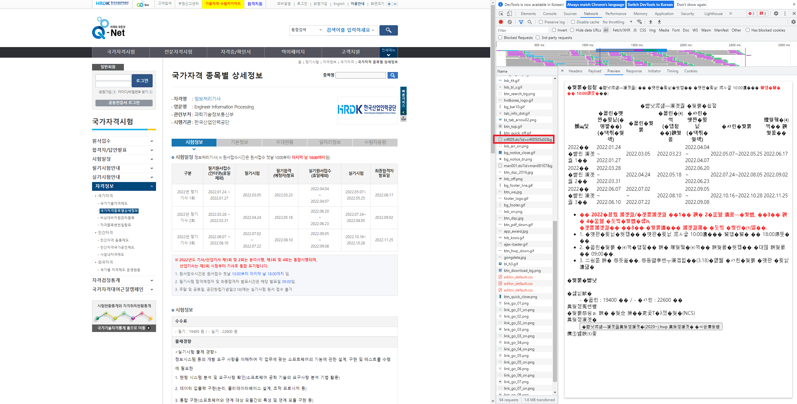 큐넷 자격 정보 크롤링