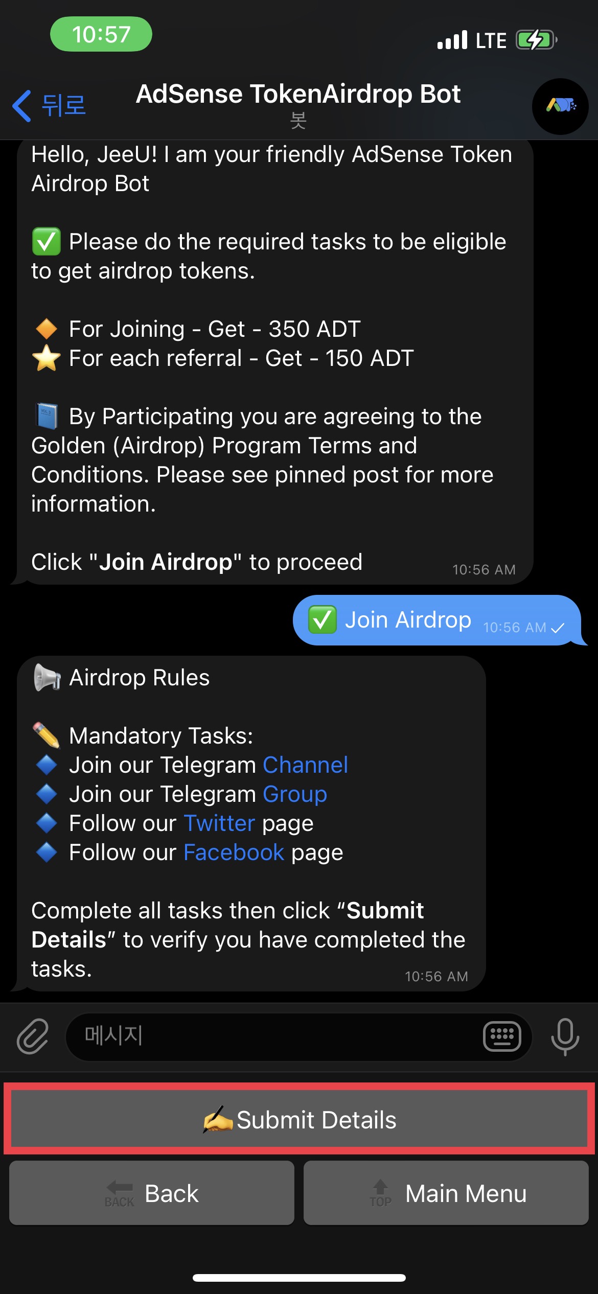 1~11번까지 진행해주시면 에어드랍 이벤트에 참여가 완료됩니다!